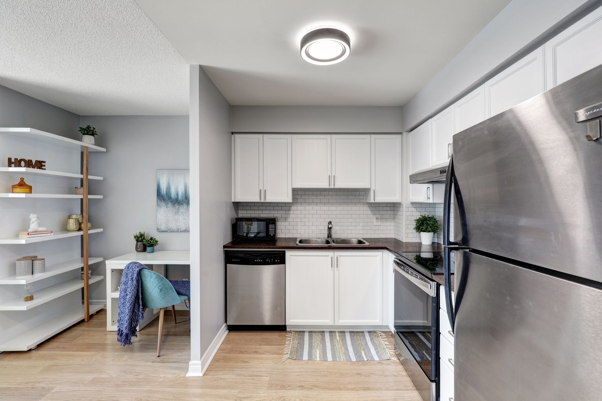 Seamless travel with steps to regional buses, TTC, and HWY 401. Features: freshly painted, newly installed modern light fixtures, ensuite laundry, same floor locker, 1 parking spot.
