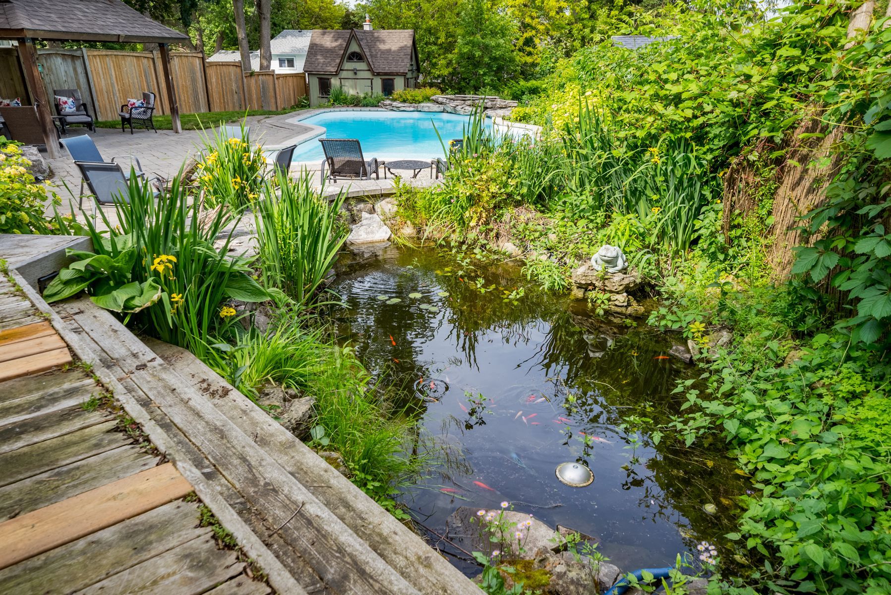 Step outside to your own massive private resort! The meticulously landscaped backyard is an entertainer's dream, complete with a sparkling inground saltwater pool, a pergola for shaded relaxation, koi fish pond and a two-tier deck ideal for summer BBQs and gatherings. This serene space offers the perfect escape from the hustle and bustle of everyday life.