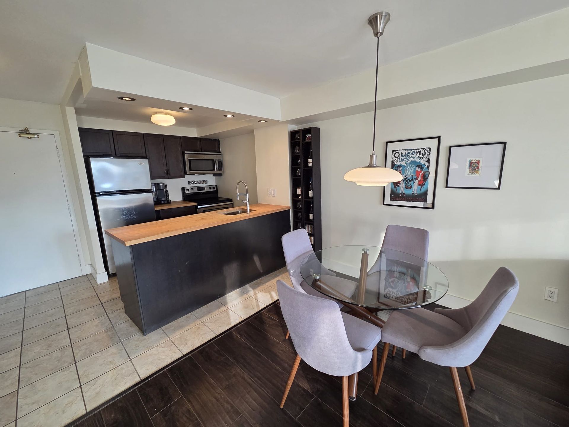 This bright and stylish 1+1 with parking offers a spacious layout, great natural light, an enclave kitchen, and a flexible den perfect for a home office or creative space.
