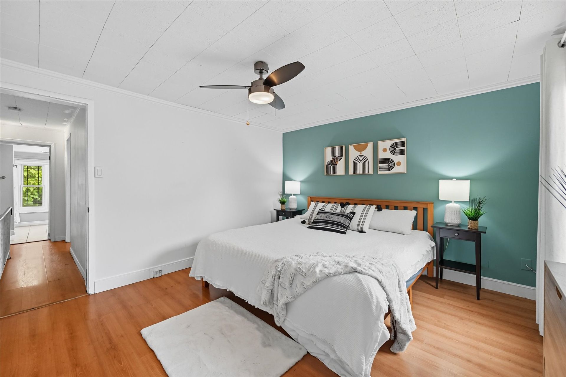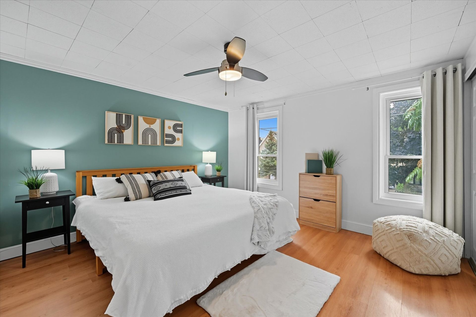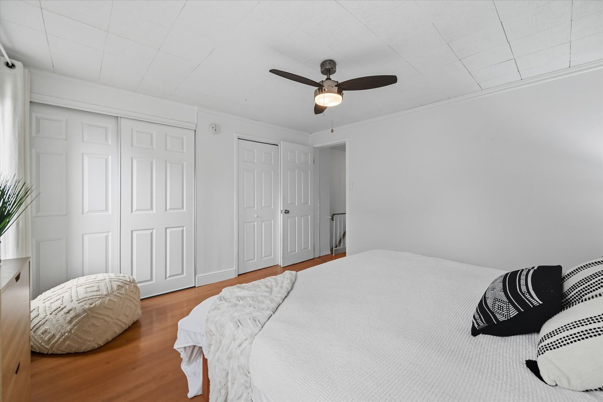 Upstairs, you'll find two spacious bedrooms, each with thoughtful features. The primary suite boasts two large windows and deep wall-to-wall closets, while the second bedroom includes a versatile nook that can easily serve as a home office, nursery, or walk-in closet. A full 4-piece bathroom completes the level.