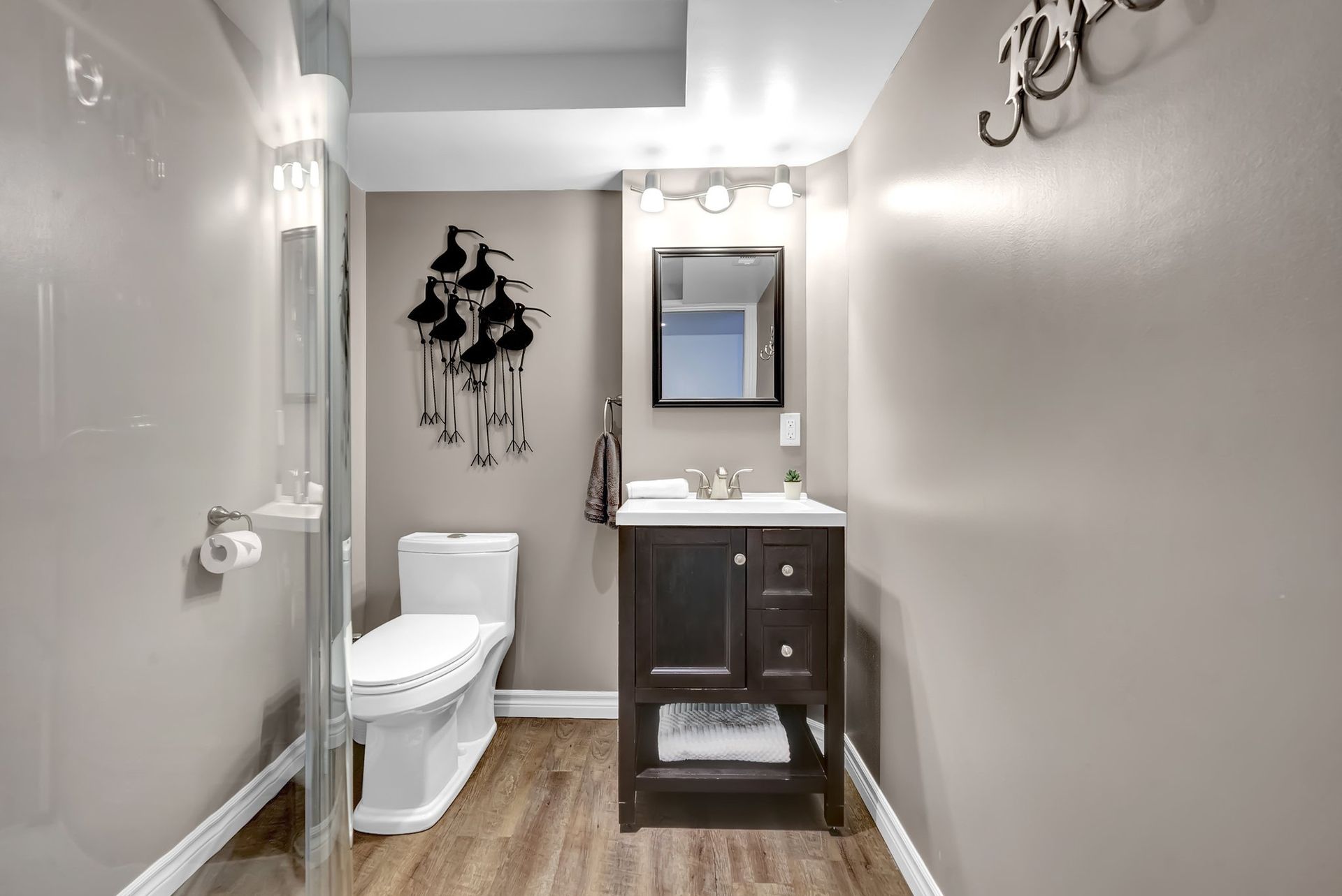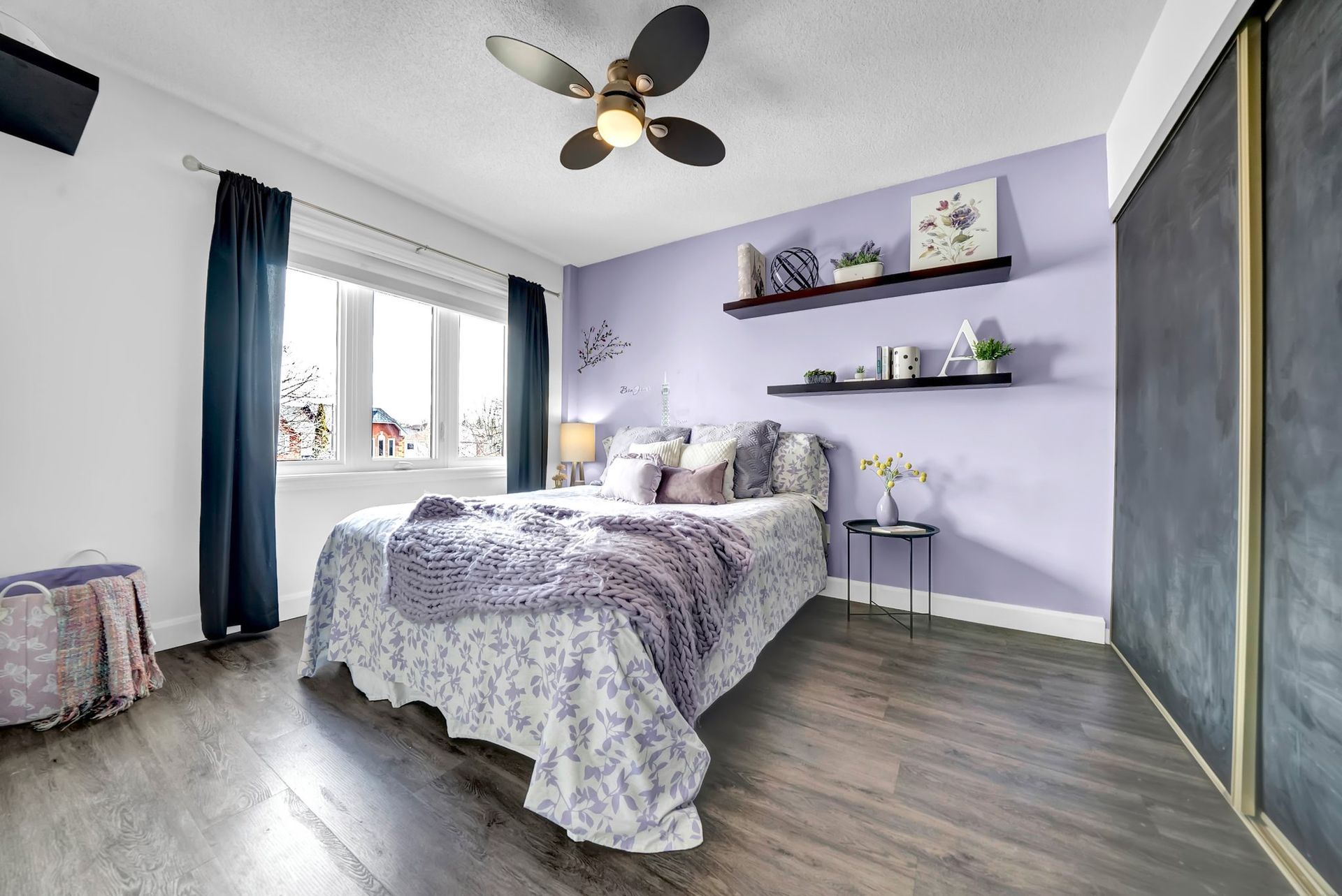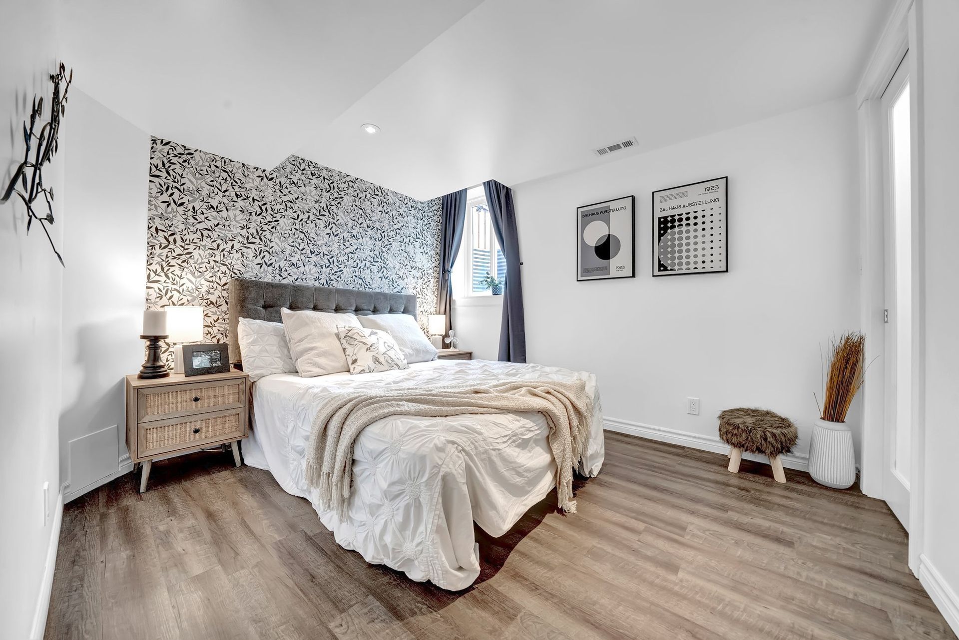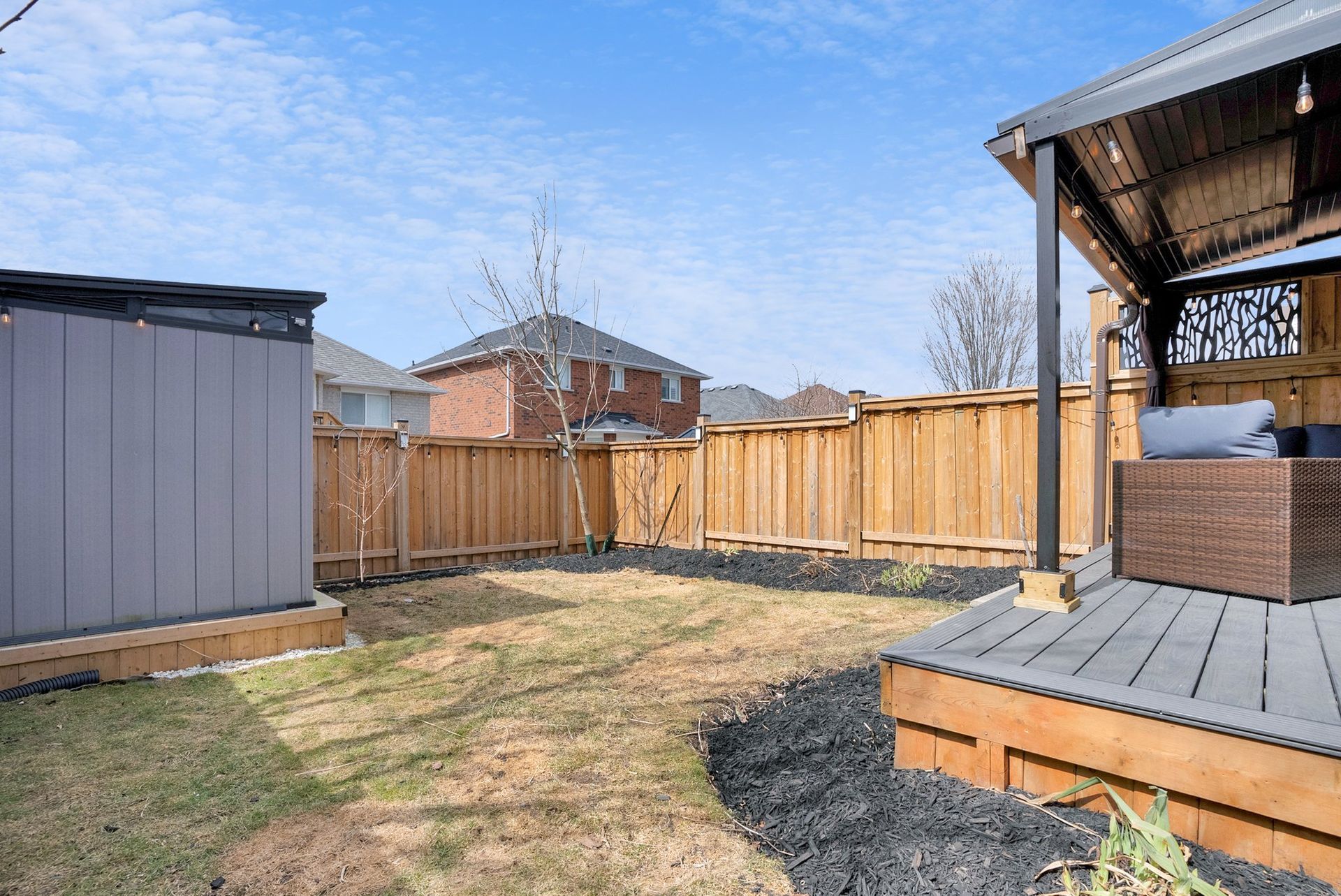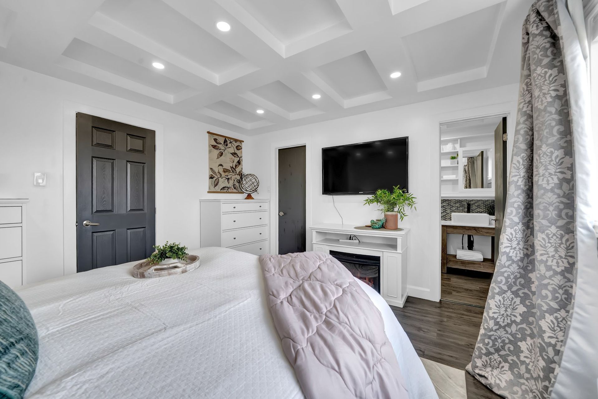 The fully fenced backyard offers privacy & space, ideal for relaxing or grilling with a natural gas BBQ. Upstairs, the primary bedroom feels like a true retreat. With a striking feature wall, coffered ceilings, & a spacious walk-in closet. The private three-piece ensuite adds to the serenity. Two additional spacious bedrooms offer ample closet space & large windows, perfect for families.