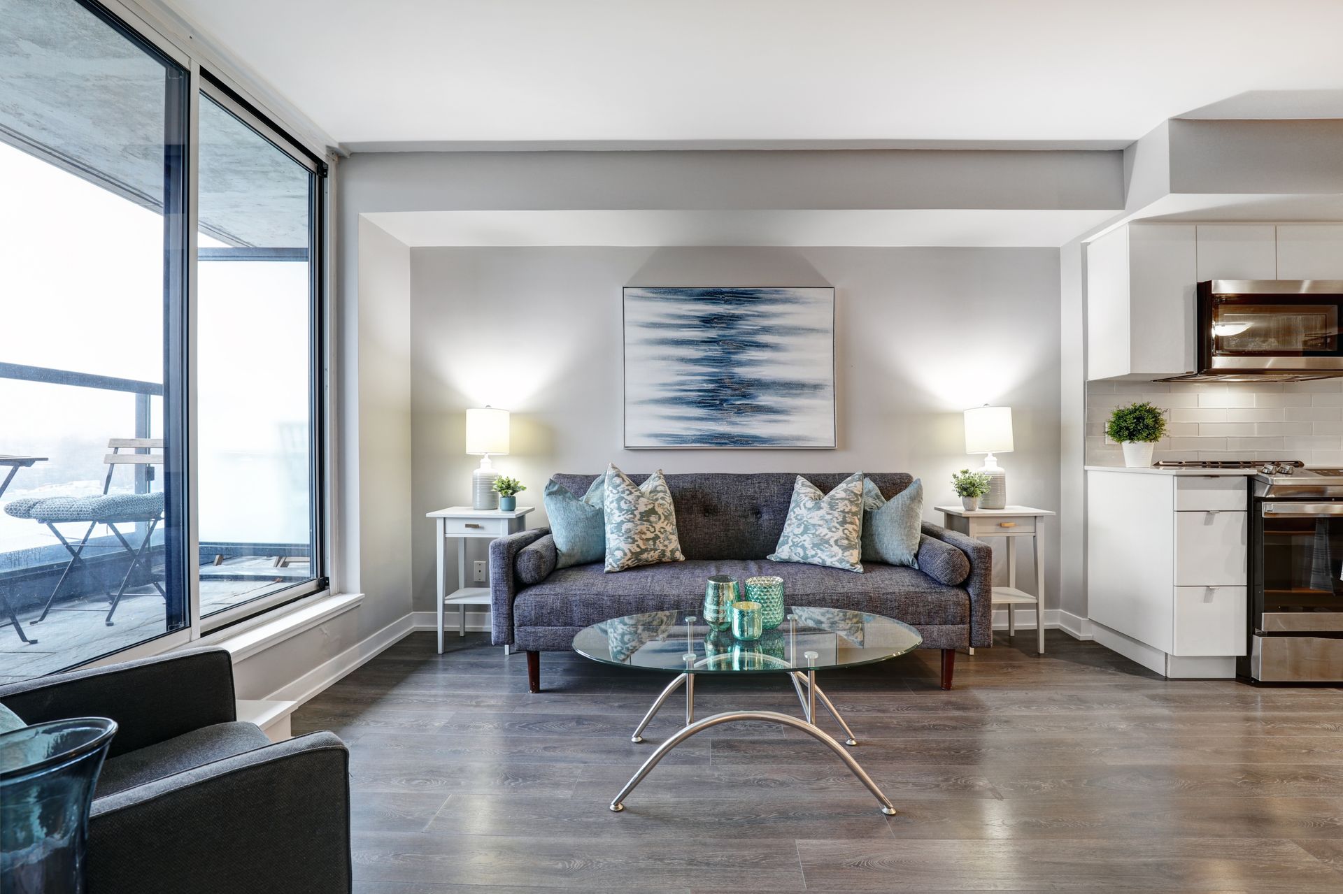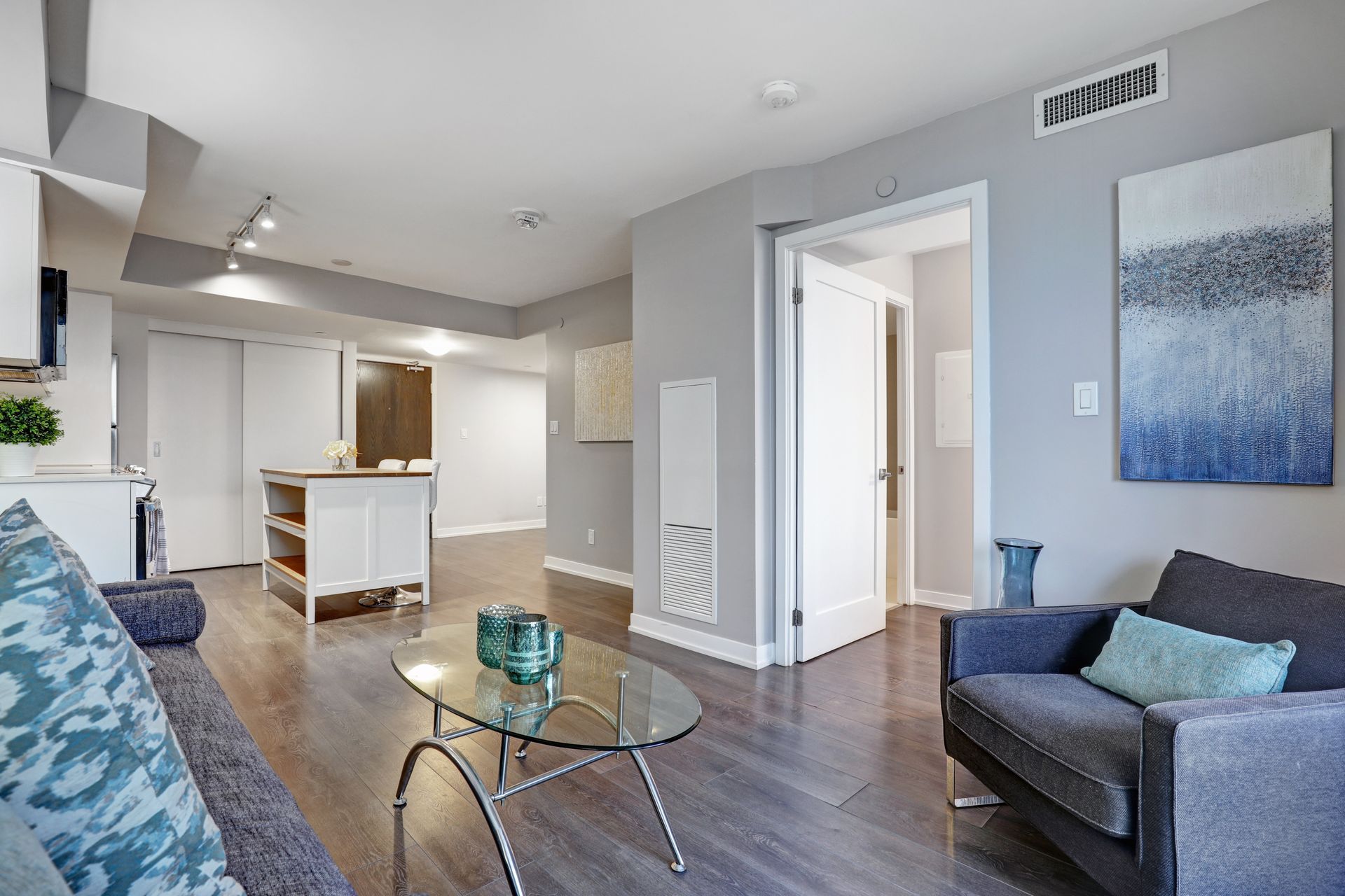 Appointed Suite Features A Sizeable Den (2nd Bedroom Potential), Stainless Steel Appliances, Quartz Countertops, Mobile Kitchen Island, & Large Windows.