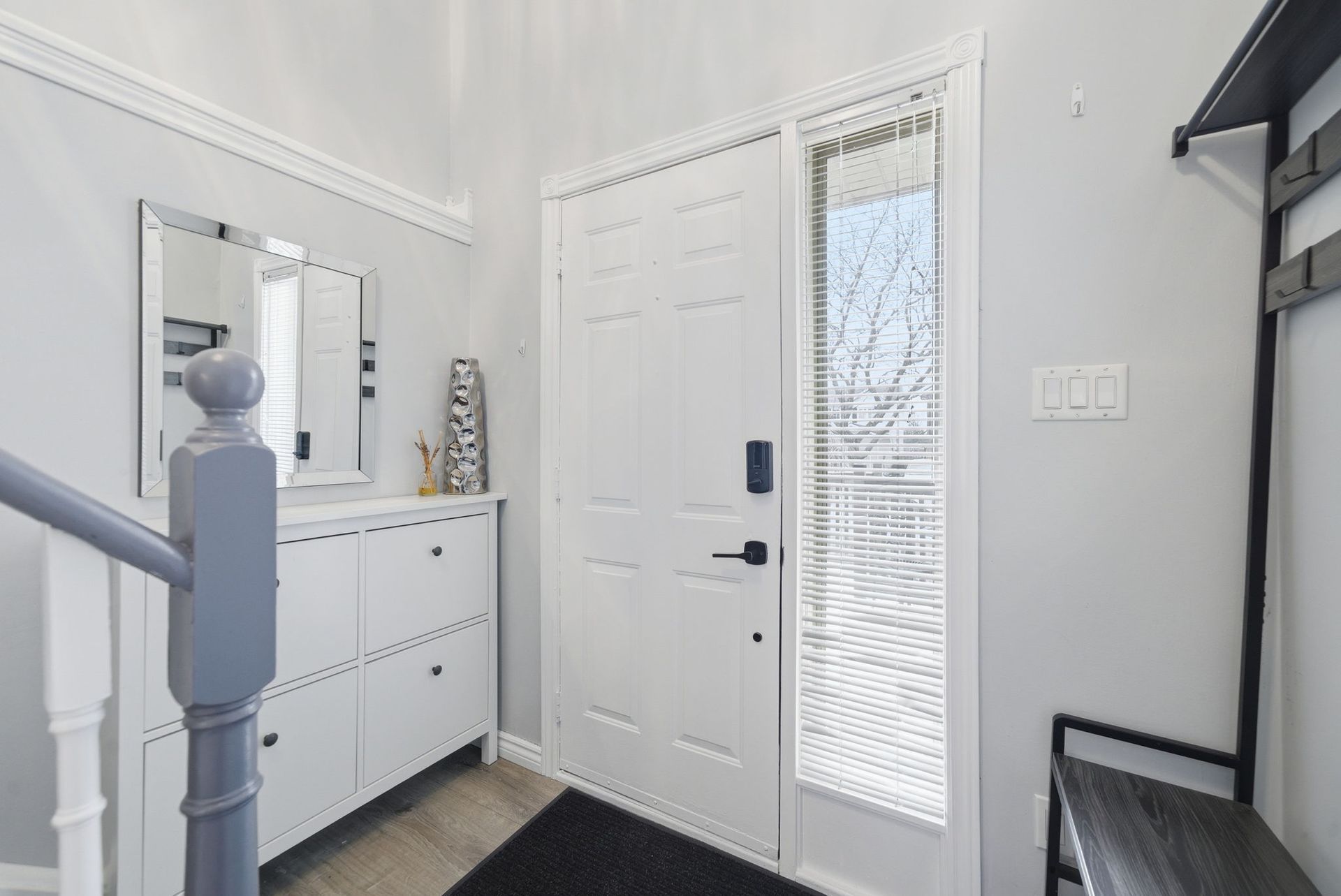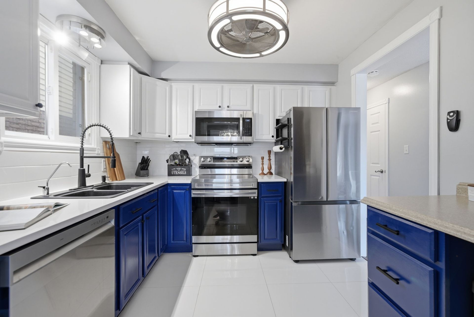 Step inside to a welcoming foyer that opens into a bright and functional main level. The living room serves as the heart of the home, featuring a cozy gas fireplace and a walkout to the backyard deck with a natural gas BBQ hookup, an ideal setting for relaxing or entertaining. Adjacent to the living area, the dining room offers a comfortable space for family meals and gatherings, while the renovated kitchen provides a modern and efficient layout with seamless flow throughout the main floor.
