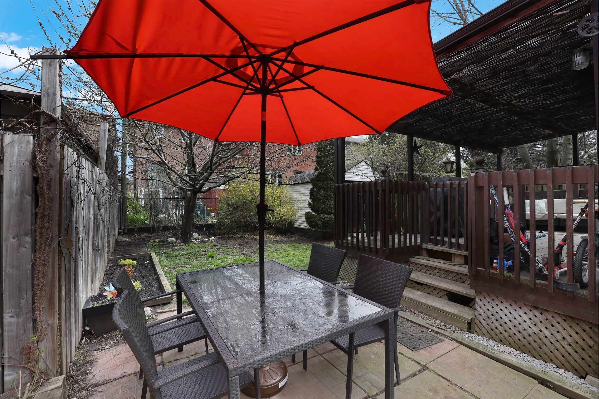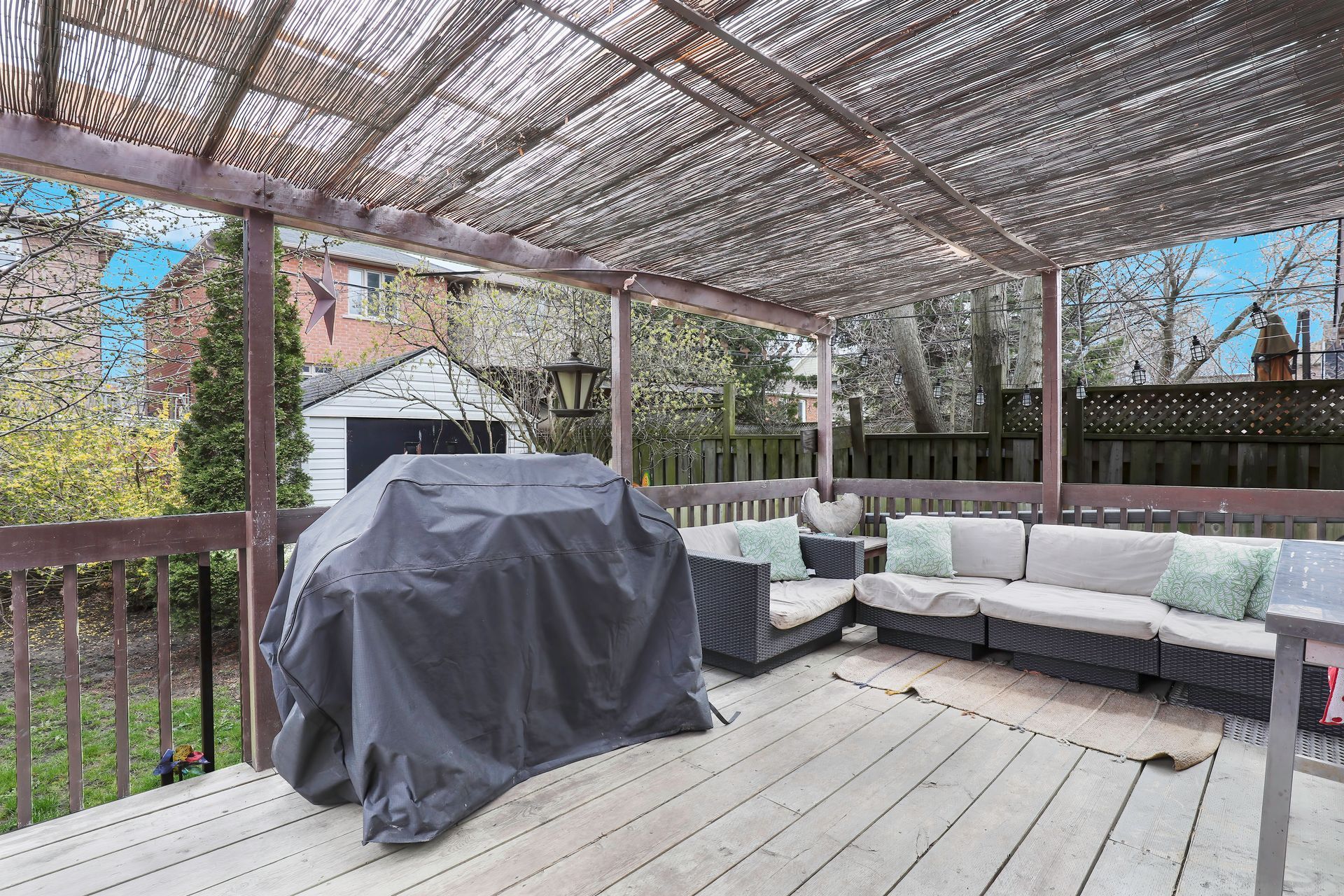 At the rear of the home you will find a walkout to the awesome backyard which features a large covered deck, and adjacent patio, great for entertaining. The backyard is lined with mature features, a storage shed, and is fully fenced for your privacy. A separate side entrance invites you downstairs to a well appointed finished basement that boasts a kitchen, 3pc bathroom, bedroom, and large living/dining room.